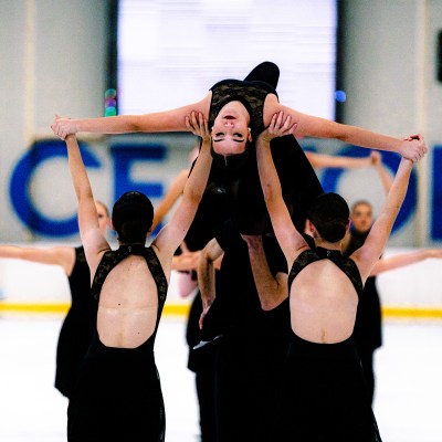 Synchronized skating, or “synchro,” is a dynamic team discipline where groups of eight or more skaters move as one, executing beautifully fluid circles, blocks, lines, wheels and intersections to music. Open to all ages and skill levels, it celebrates unity and teamwork on and off the ice.